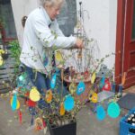 Sie …Ihre fast 90jährige Mama und die Enkelkinder haben die bunten Eier ausgeschnitten..mit Bildern unserer Tiere beklebt und beschriftet.