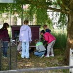 Die Lehrkräfte, Heidi, ich und vor allem die Kinder verbrachten annähernd 2 vergnügte Stunden im Tierheim . Unsere Kaninchen waren die Favoriten bei den Schülern. Sie verwöhnten sie mit Weidenzweigen und Gras, das sie im Gelände gepflückt haben.