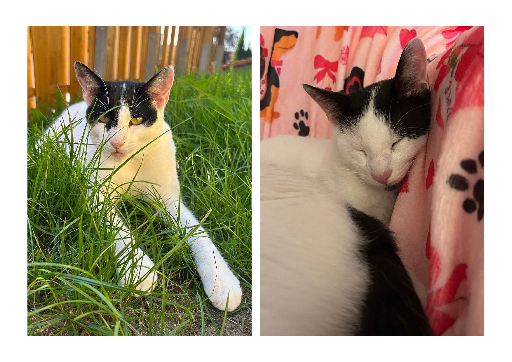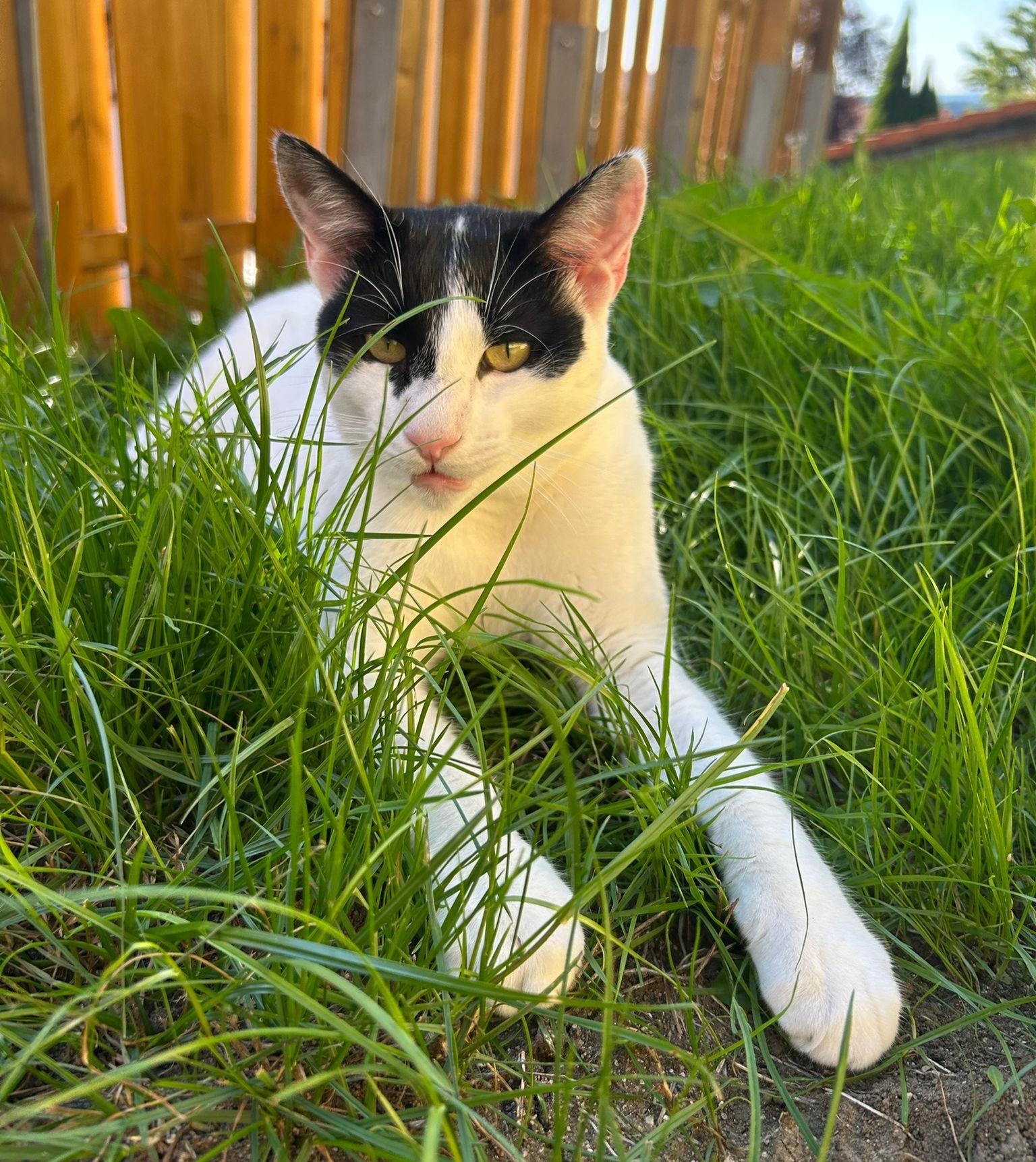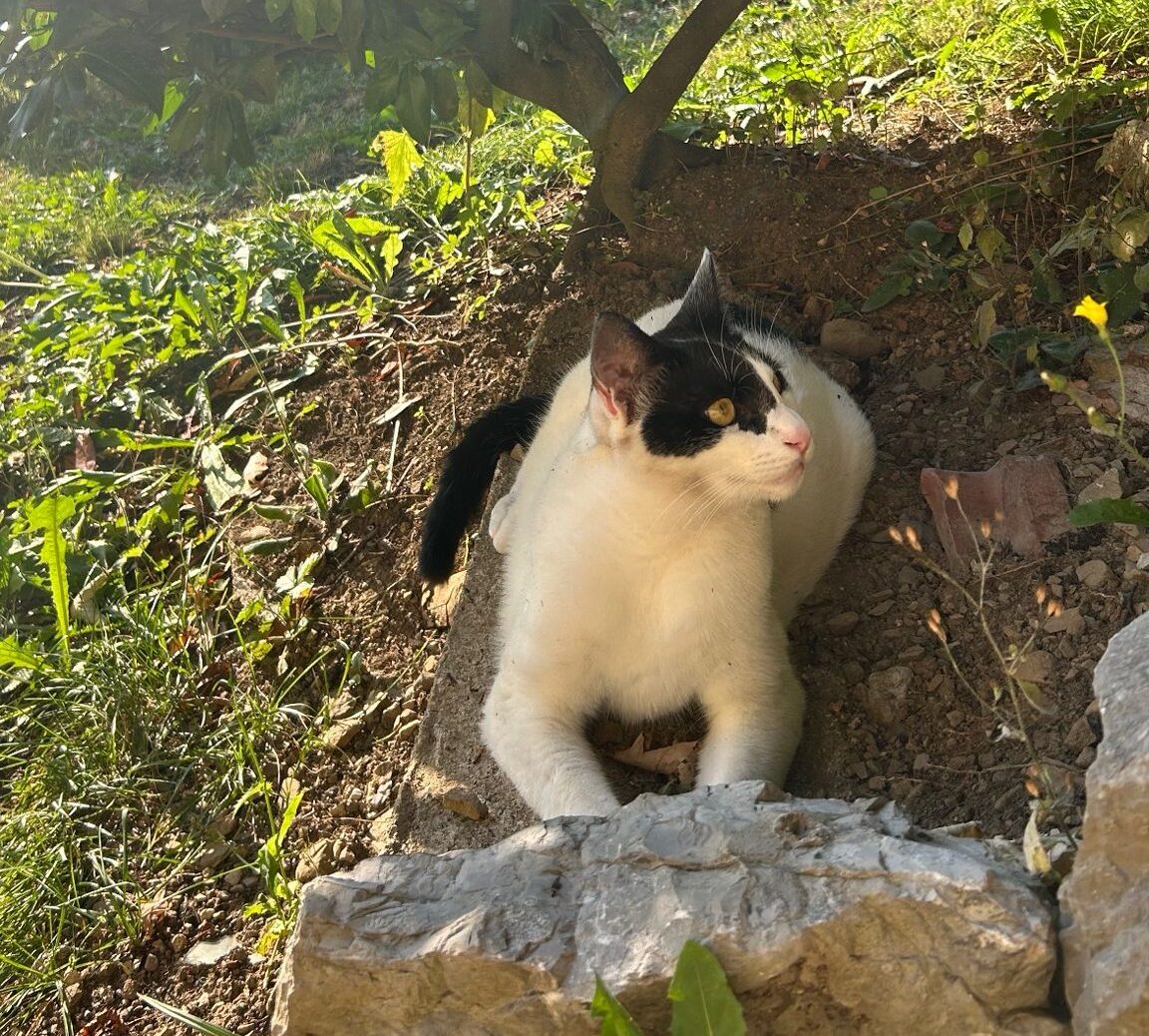 Er geht gerne auch raus und genießt die Sonne im Garten. Er bleibt im Garten oder in der Nähe. Wenn er Vertrauen zu einem hat, kommt er auch zum kuscheln. Grundsätzlich ist er aber nicht scheu.