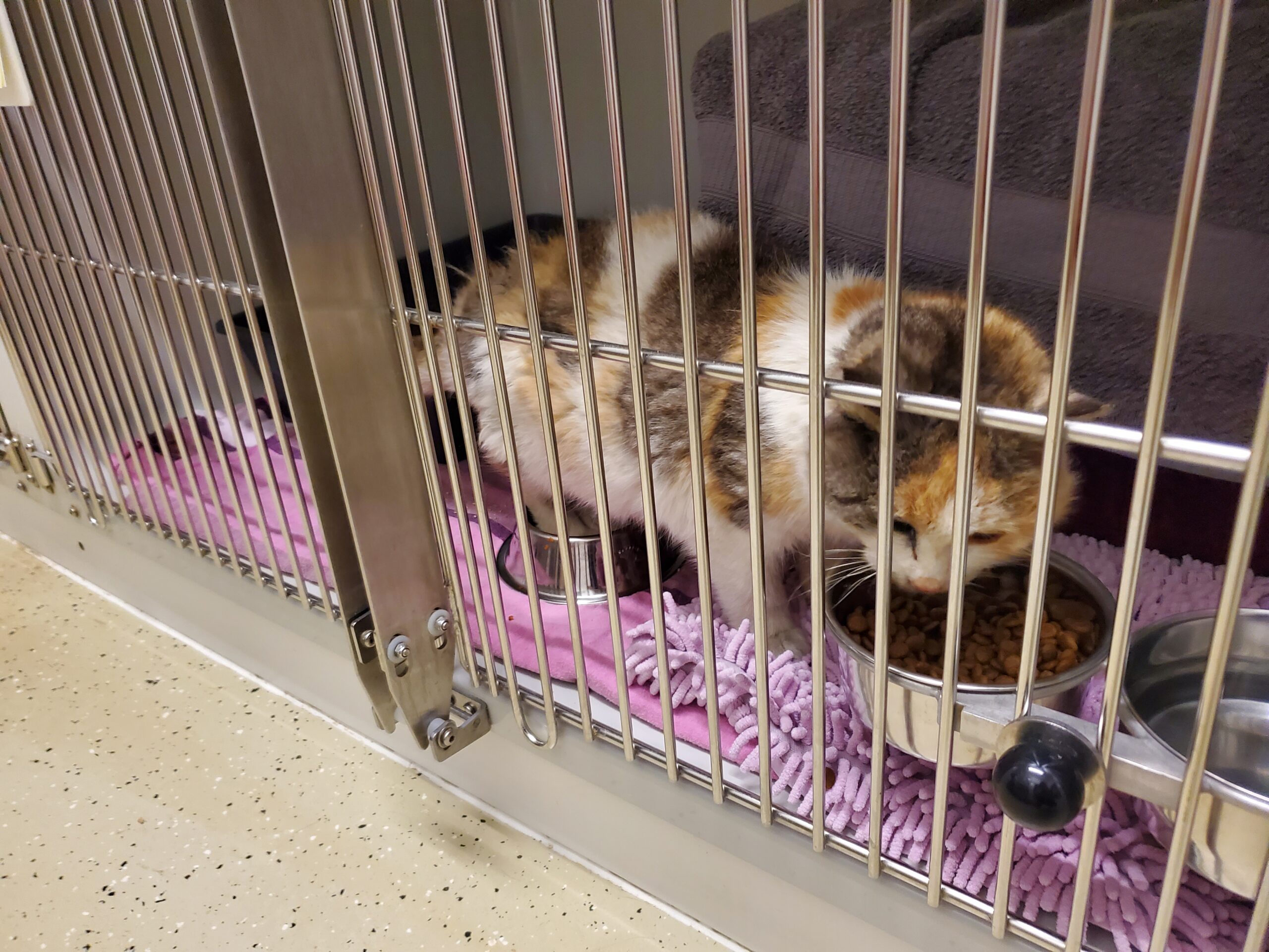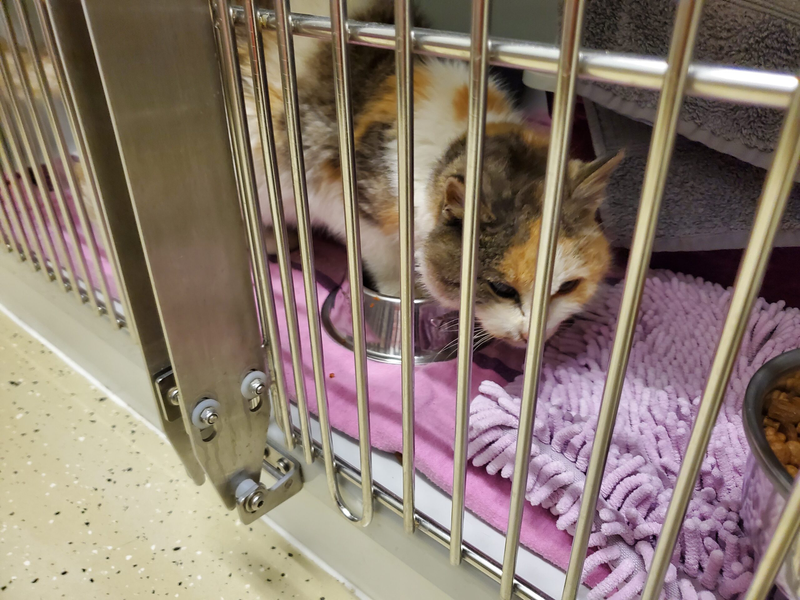 Die Katze lief am 13.10.25 einer Frau mit Hunden beim Spazierengehen bis zu ihr Nachhause nach. Sie verständigte uns und wir konnten die Katze in der Hauptstr. in Oberding sichern und ins Tierheim bringen. Wir haben sie Stella genannt.