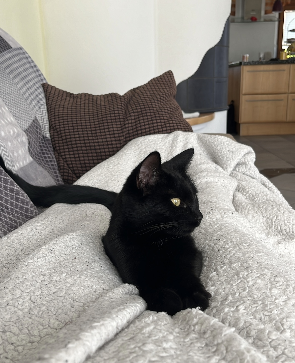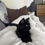 Besondere Merkmale: Sie hat vereinzelt weiße Haare auf der Brust und in den Ohren, sonst komplett schwarz