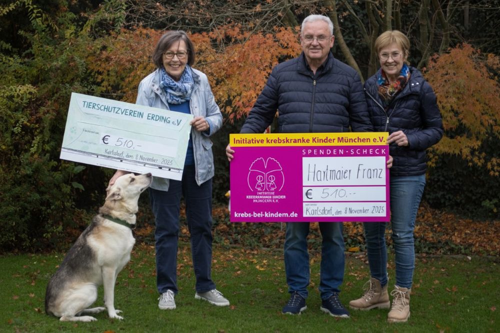Dabei ist die stolze Summe von 1.020,00 Euro zusammen gekommen. Diese hat er zu je 50 % (510,00 €) an die Initiative krebskranke Kinder München e.V. und dem Tierschutzverein Landkreis Erding e.V. übergeben.