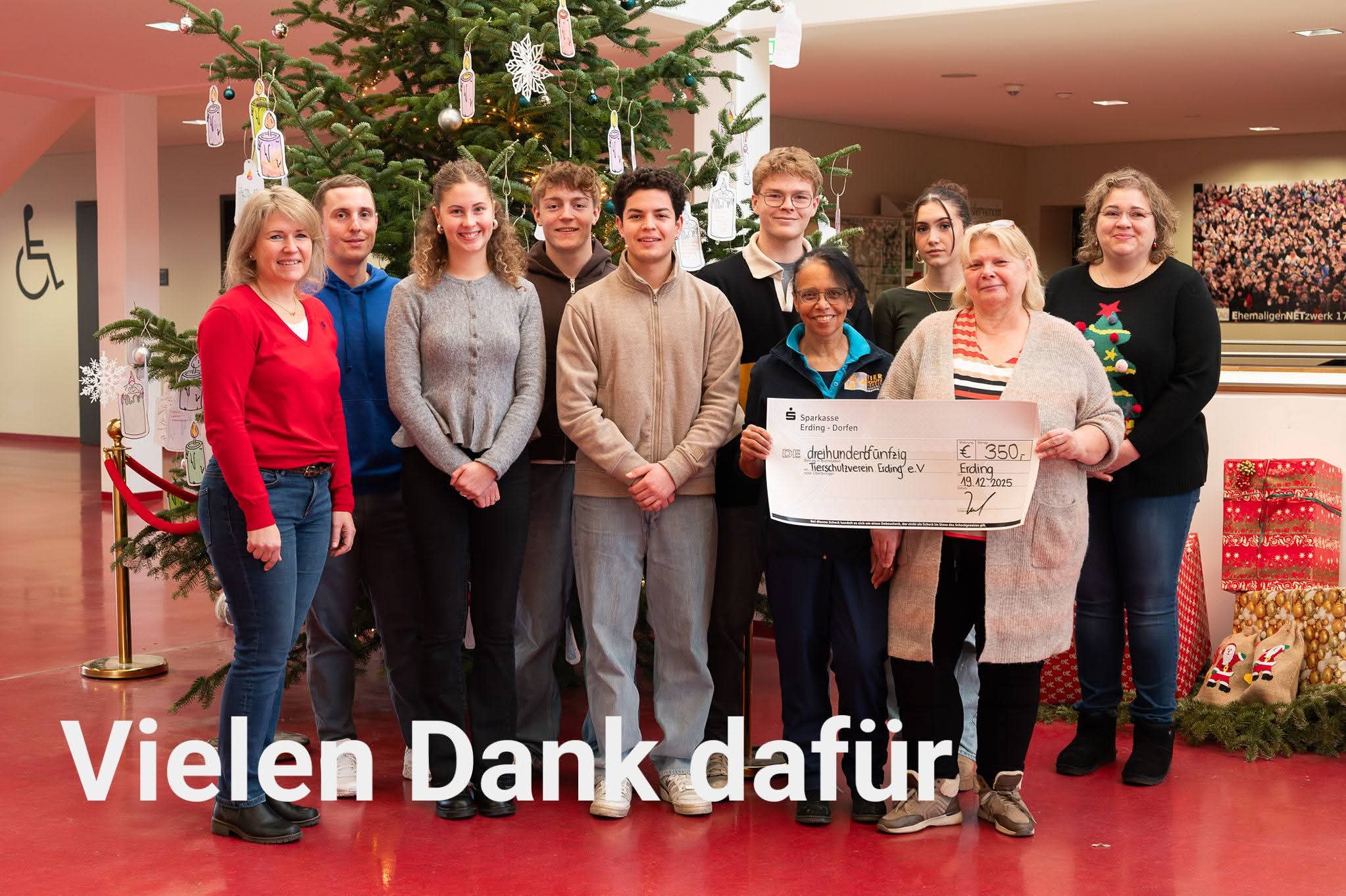 Der Gesamterlös von 700 Euro fließt an zwei Projekte: 350 Euro überreichten die Schülersprecher an Michaela Meier und Heidi Lupek vom Tierschutzverein Erding, die andere Hälfte erhielt das Bayerische Rote Kreuz (BRK) Erding, vertreten durch Iris Menzinger. Damit wird das Herzenswunschmobil des BRK unterstützt. Mit diesem Projekt soll Menschen in ihrer letzten Lebensphase ein Herzenswunsch erfüllt werden, heißt es auf der Homepage des BRK Erding. Ausflüge, z.B. für einen Sonnenuntergang im Freien oder ein letztes Mal an einen Lieblingsort, die an eingeschränkter Mobilität oder fehlenden finanziellen Mitteln scheitern, sollen damit ermöglicht werden.