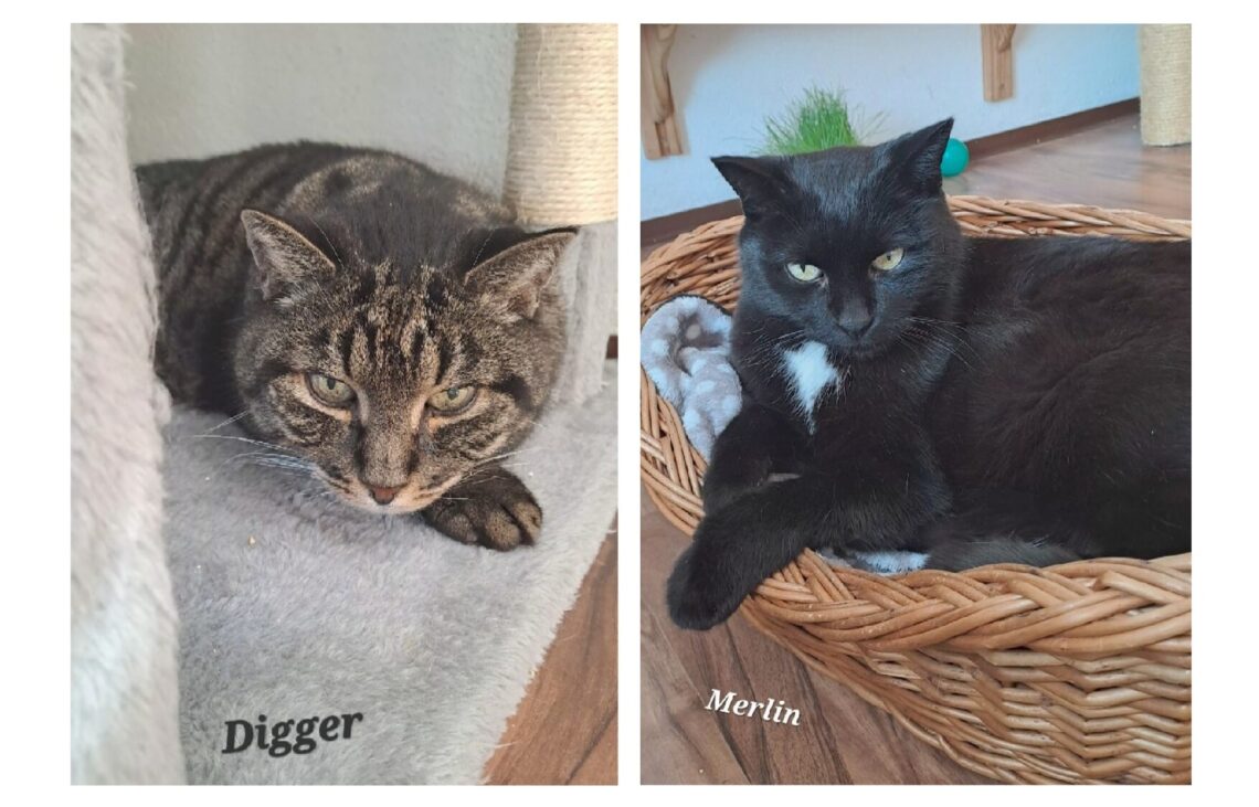 Merlin und Digger mussten von Ihrer Besitzerin leider schweren Herzens aus gesundheitlichen Gründen abgegeben werden. Nun machen sie sich auf die Suche nach einem neuen, warmen Zuhause, wo sie weiter gemeinsam glücklich sein können.