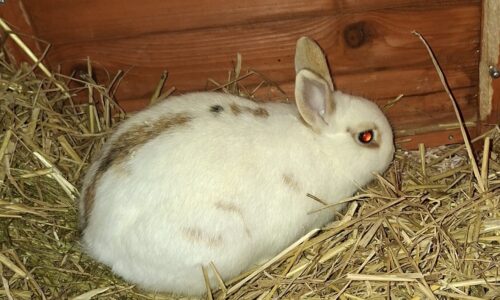 Rosemarie ist ein Farbenzwerg geb. ca. 2025 weiblich, nicht kastriert. Die Fellfarbe ist weiß-braun (Schecke) Sie ist gegen Myxomatose und RHD1/ RHD2 geimpft und kann in Außenhaltung vermittelt werden, zu einem vorhandenen Partnertier.