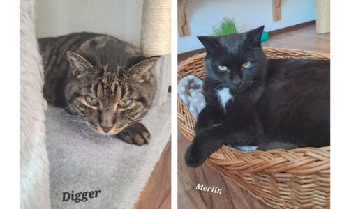 Merlin und Digger mussten von Ihrer Besitzerin leider schweren Herzens aus gesundheitlichen Gründen abgegeben werden. Nun machen sie sich auf die Suche nach einem neuen, warmen Zuhause, wo sie weiter gemeinsam glücklich sein können. Merlin, schwarz, 15,5 Jahre, benötigt Schilddrüsentabletten. Er hätte gerne eine große Wohnung mit Freigang/ gesichertem Freigang.…
